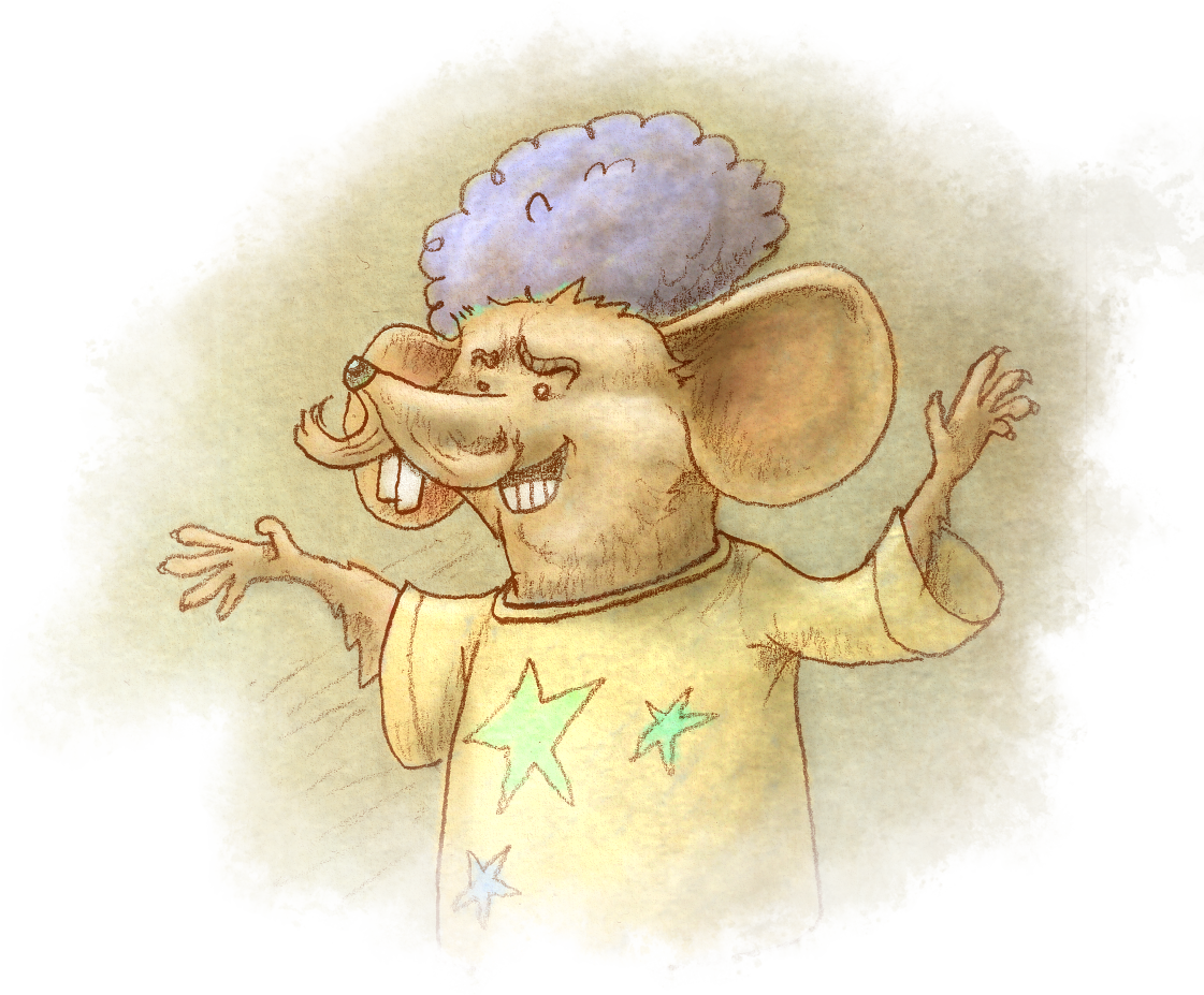 No hat too silly, no shirt too garish, always smiling, always swish. He dons his curly wigs with flair, he doesn't care about his hair.